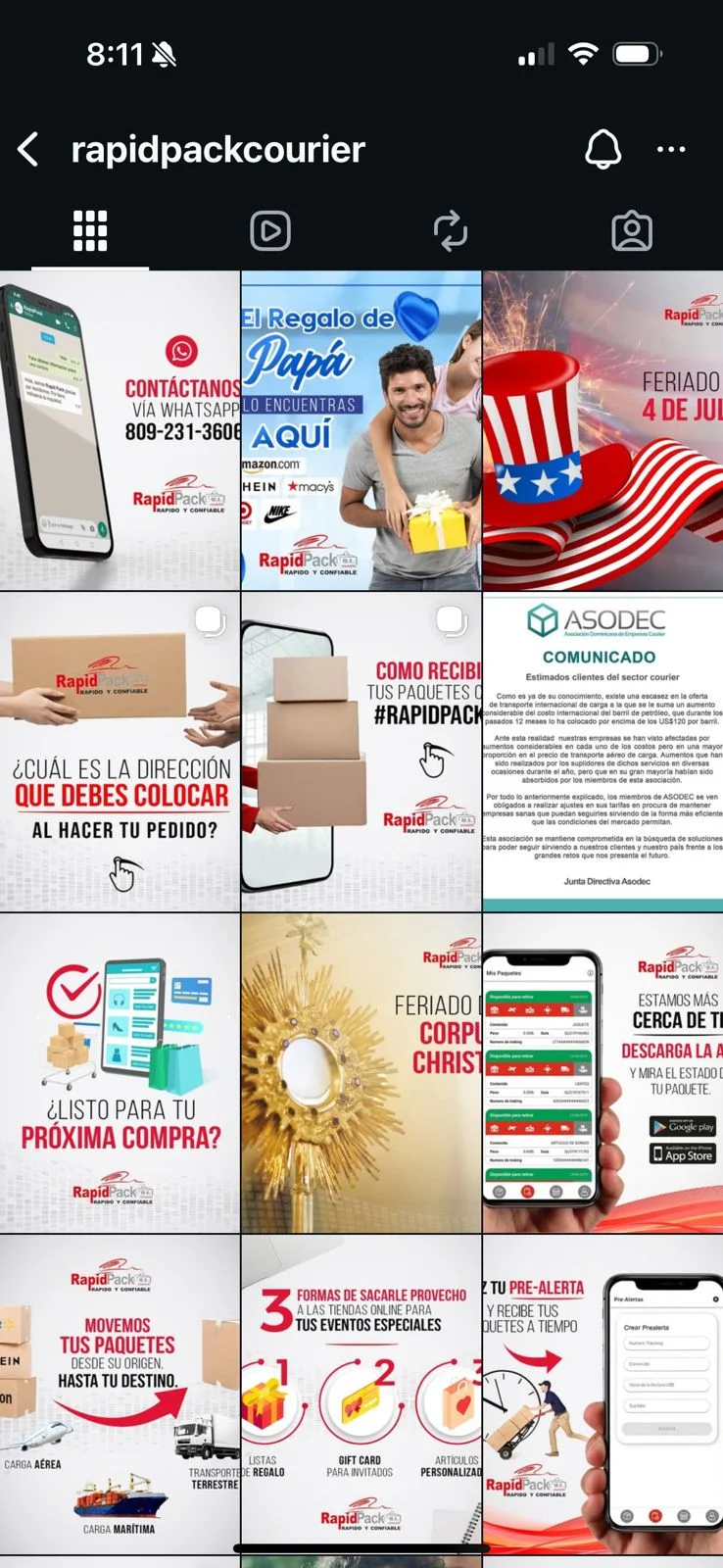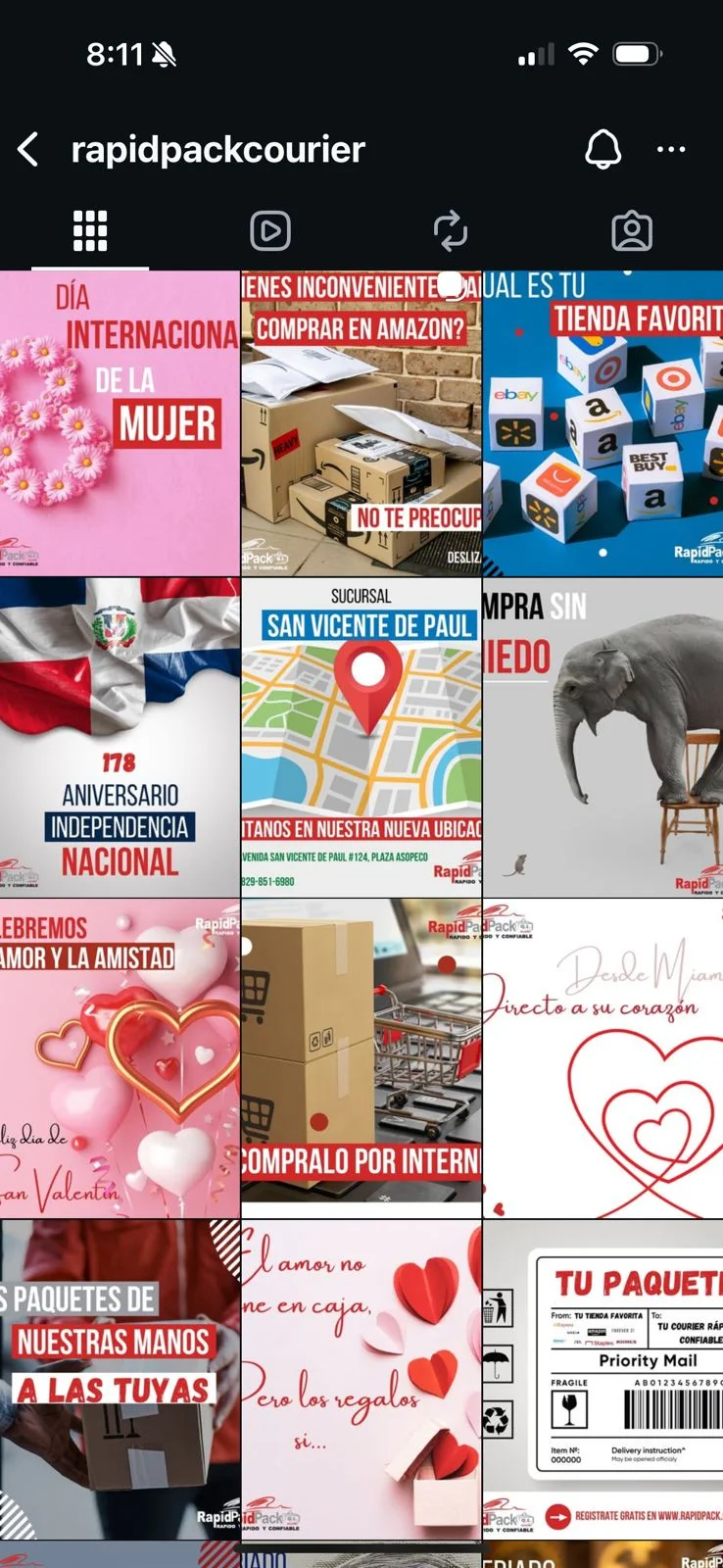 Comparación real del feed de RapidPack Courier: de publicaciones aisladas y estilos mezclados, a un sistema visual consistente que ordena la comunicación y hace más fácil decidir.
